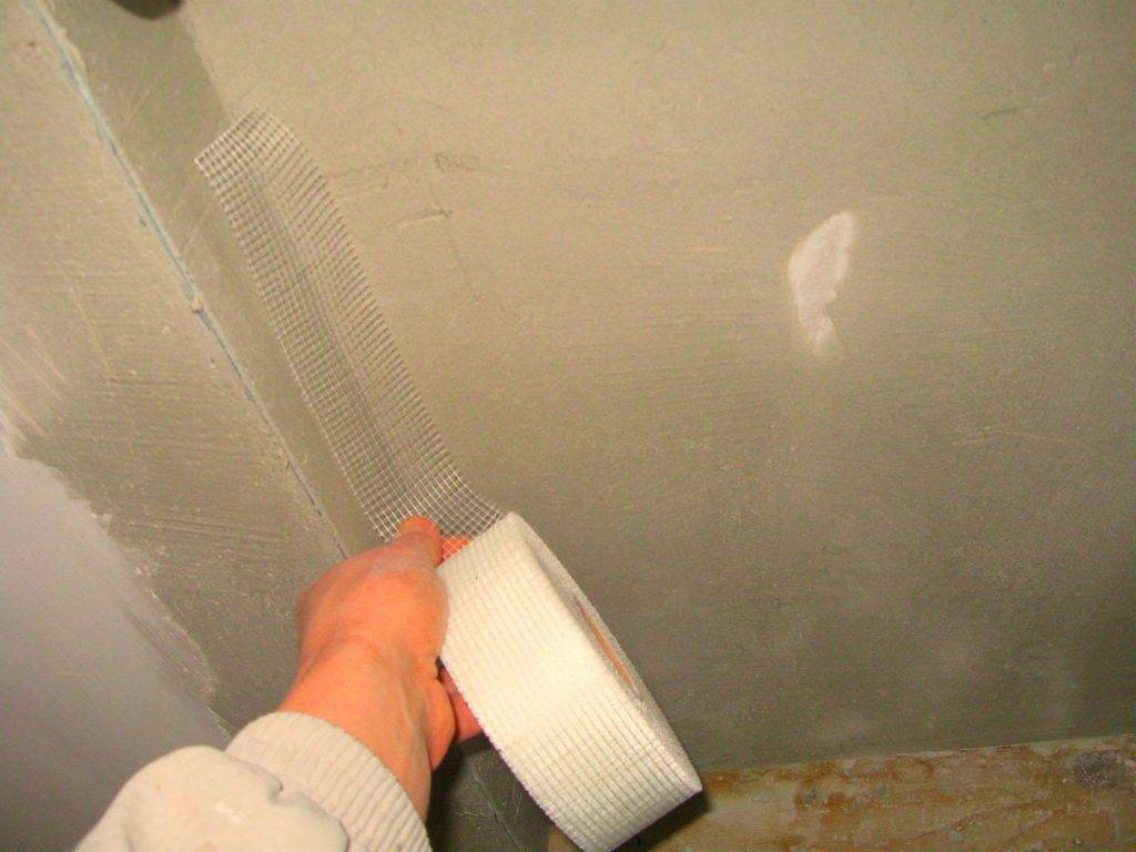 - армирующей лентой закрываются стыки ГКЛ, фиксация выполняется на шпатлевку;