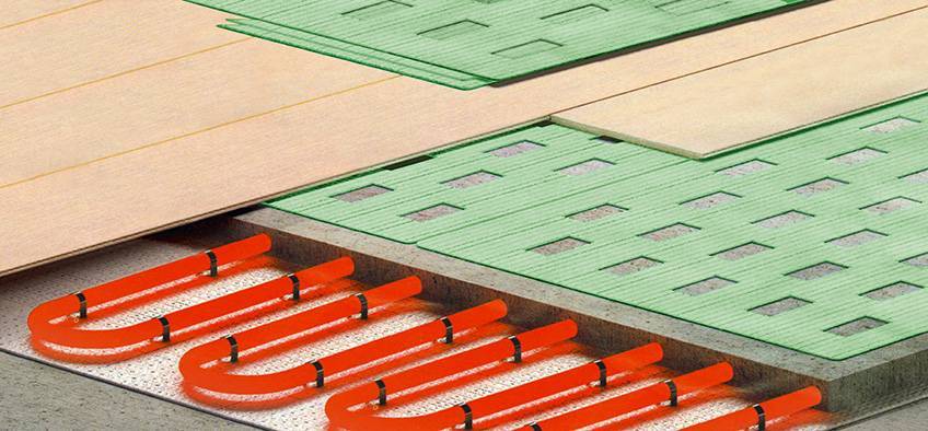 И тот и другой материал (доски и паркет) может укладываться на водяной пол или на электрический. Чтобы не городить под дощатый пол стяжку, трубы водяного пола укладывают в специальные металлические лотки, которые размещают между планками чернового деревянного пола. А дальше уже настилают доски. Но эффективность такой системы невелика, так как много тепла теряется.