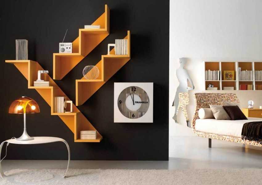 Лучше сразу ориентироваться на то, чтобы сделать красивые полки своими руками, дополняющие декор помещения. Например, для комнаты в духе хай-тек подойдут многоуровневые стеклянные модули, для классики – деревянные дощечки.