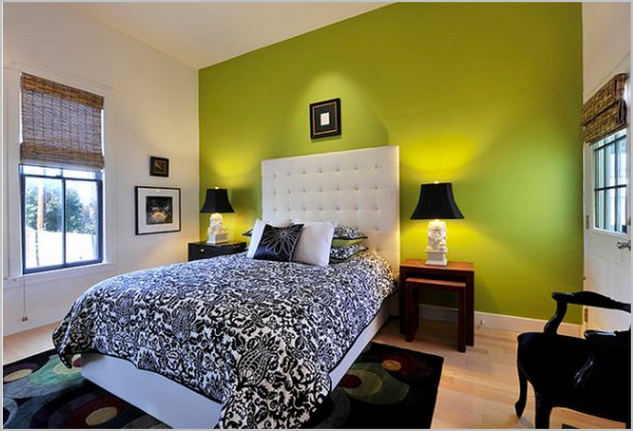 Вполне достаточно сделать акцентной одну из стен с помощью контрастных обоев, росписи или зрелищной картины. Для разнообразия поиграйте с разными оттенками одного и того же цвета.