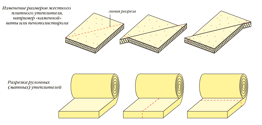 2. Выбранный теплоизолятор режут по намеченным линиям с помощью канцелярского ножа как по длине, так и по ширине.