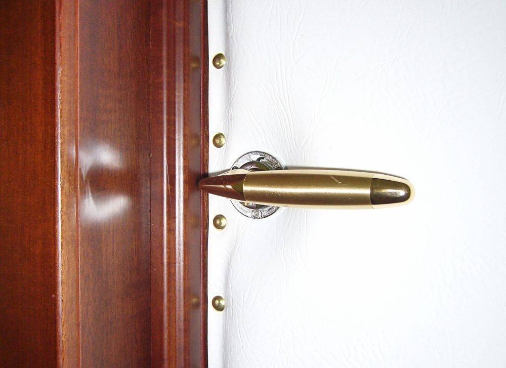 - После окончания всех работ, верните на место замки и ручки (см. Ручки для входных дверей, выбираем более подходящую ).