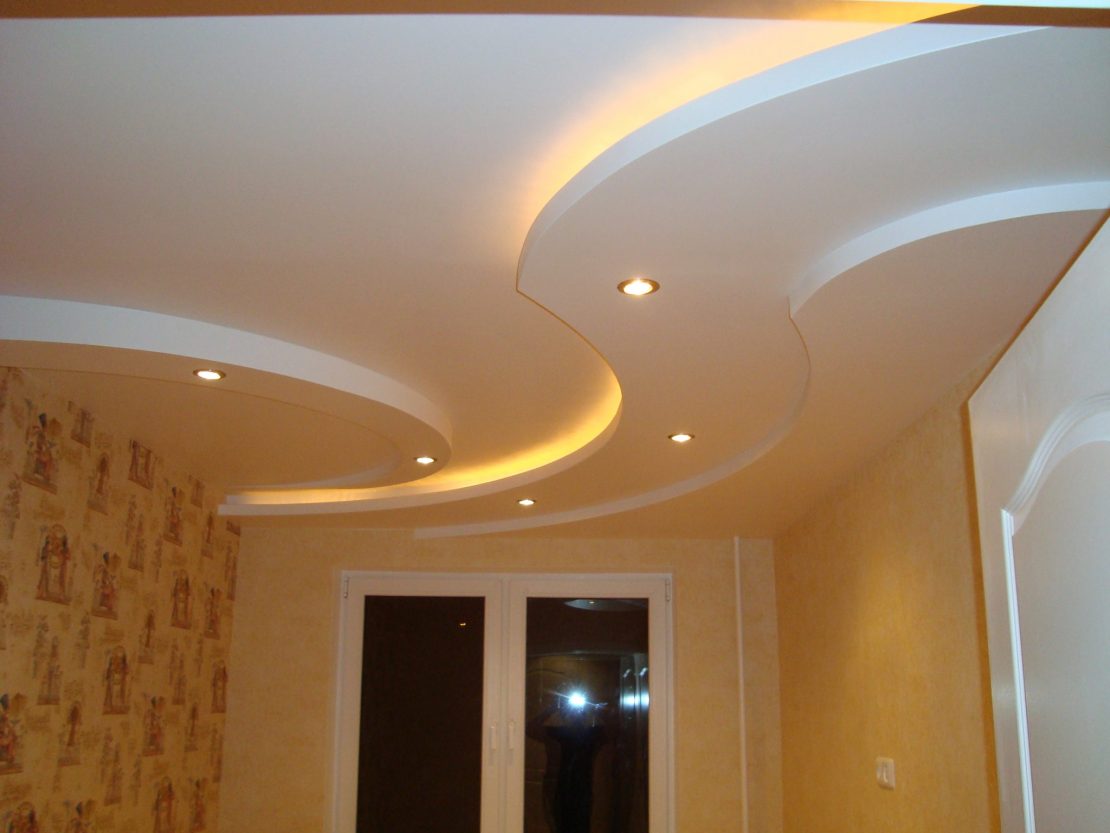Гораздо эффектнее дизайн подвесных потолков из гипсокартона в зале, если включает несколько уровней. Что это означает?