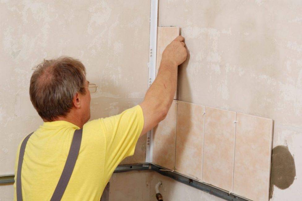 Укладка керамической плитки на стены.