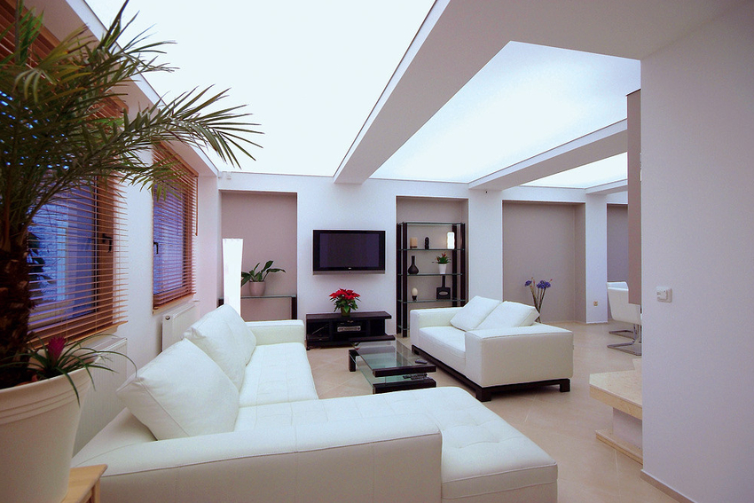 Светлый потолок с комбинированным освещением Источник dizainexpert.ru