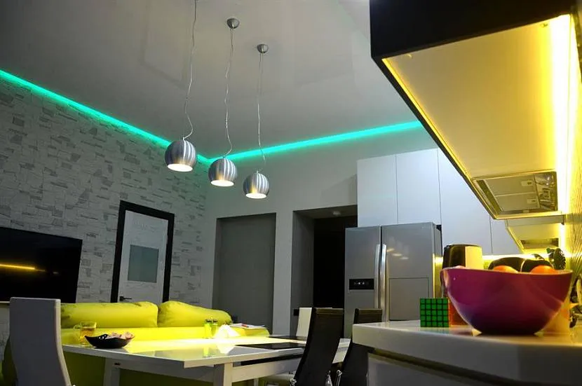 Для подсветки натяжного потолка могут применяться различные источники искусственного света