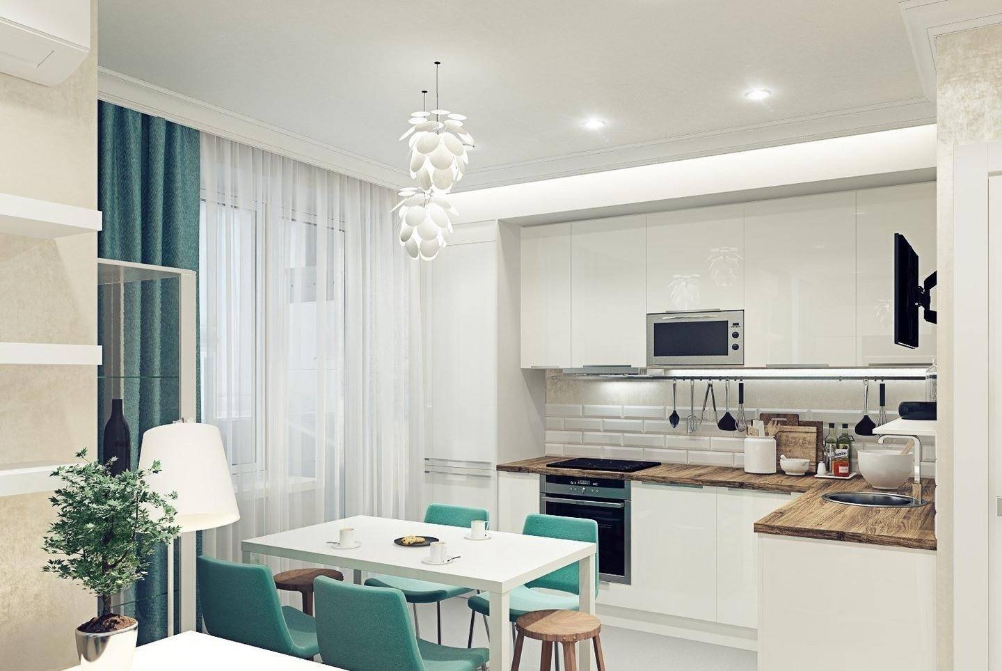 - сделать потолки в гостиной, совмещенной с кухней, грамотно по современным меркам;