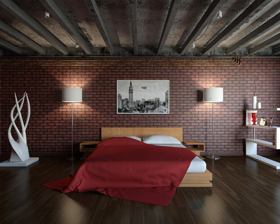 В квартире с кирпичными стенами нужно оставить несколько поверхностей, которые будут отличаться от остальных тем, что кирпичная кладка не покрыта специальной штукатуркой. Как правило, такие поверхности присутствуют в каждой функциональной зоне. Подобная стена в стиле лофт позволяет не только разделить цельное пространство на разные части, но и подчеркнуть единство и неповторимость выбранного стиля. Многие специалисты рекомендуют создать имитацию либо каменных, либо голых кирпичных стен. Например, для такой отделки могут использоваться обои в стиле лофт.