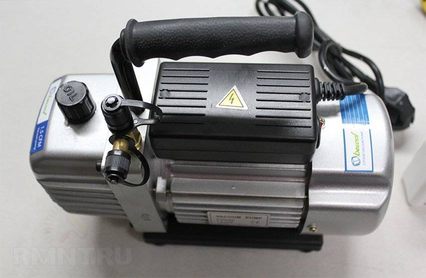 - вакуумный насос — для вакуумирования трассы хладагента;