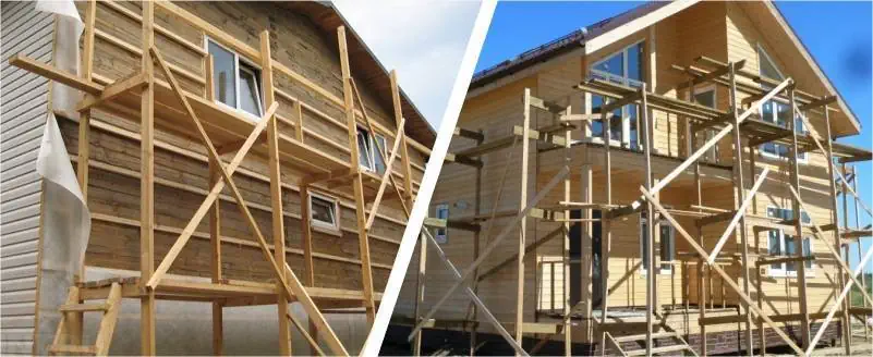 Самый известный и используемый с давних времен для сооружения лесов материал — дерево. Оно подходит для сборки лесов-подмостей, используемых при проведении отделочных работ малоэтажных строений (например, частных домов).