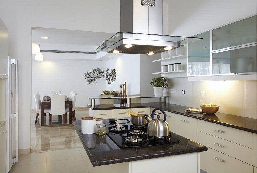 Исходя из норм, подберите оборудование вытяжки на кухне с запасом. Можно регулировать скорость вывода с помощью нескольких встроенных режимов скорости.