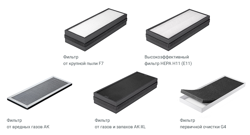 Входящие в состав воздушные фильтры предназначены для очистки поступающего извне воздуха от пыли и насекомых. Состояние устройств контролируется датчиками. Воздух по каналам перемещается принудительно, при помощи вентиляторов, мощность которых зависит от обслуживаемой площади и желания потребителя. Для обеспечения комфорта, система оборудована звукоизоляцией, позволяющей максимально снизить звук воздушного потока.