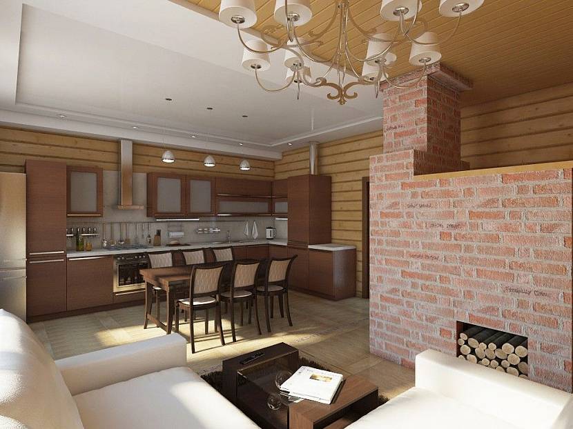 Дизайн-проект современной кухни-гостиной с печью Источник svoimy-rukami.ru