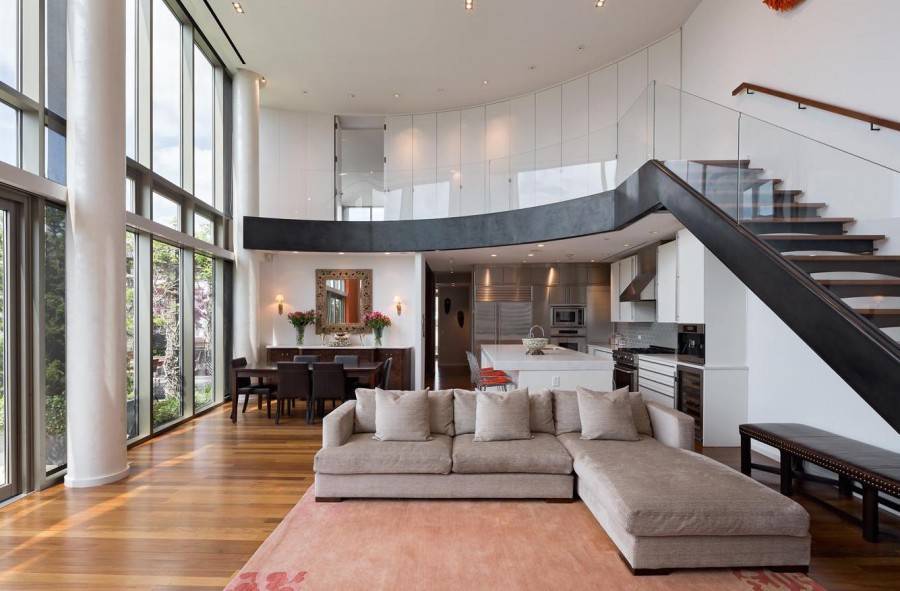 - в длинном коридоре, проходной комнате, на лестничном пролете;