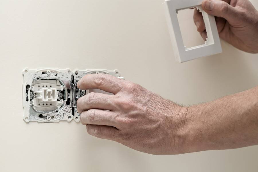 После подсоединения проводки, на коробку ставится заглушка, собираются выключатели, подается питание и осуществляется проверка работоспособности схемы. Если все в порядке, можно замазывать штробы.