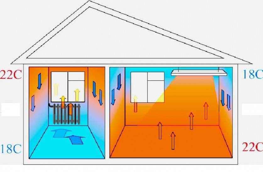 Но в отличие от него есть одно существенное отличие – нет надобности в установке трубопроводов или воздушных каналов. Это позволяет сделать зональный обогрев помещения без монтажа элементов, аналогичных промышленным конвекторам водяного нагрева.