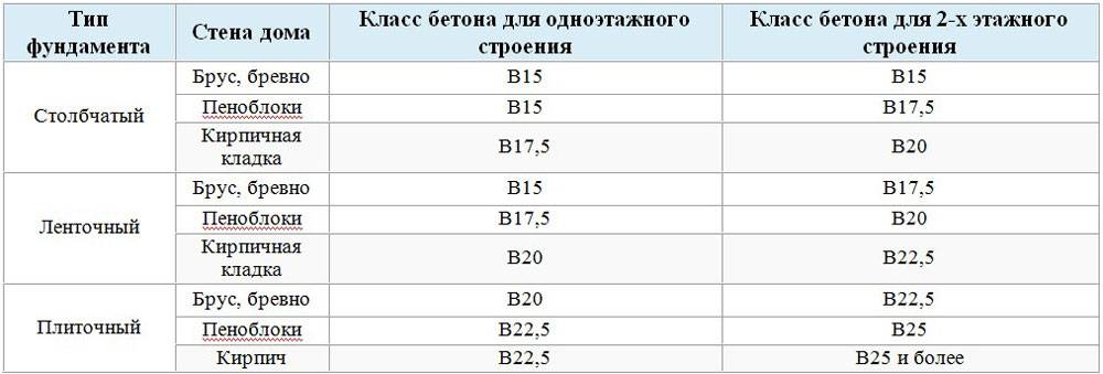 Итак, какой марки или класс бетона подойдет для определенного вида фундамента?