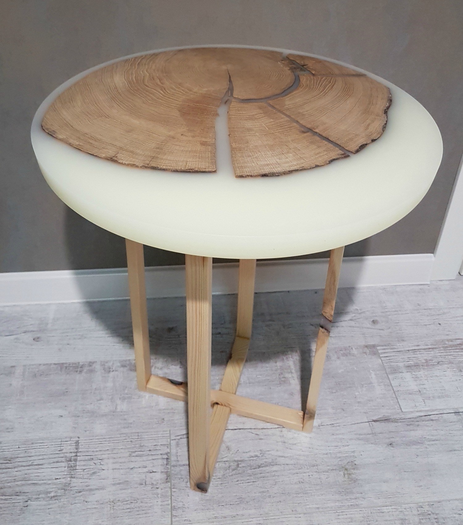 - Без опоры. Таким вариантом можно создавать небольшие журнальные или прикроватные столики. Они полностью состоят из эпоксидки и не предназначены для усиленных нагрузок.