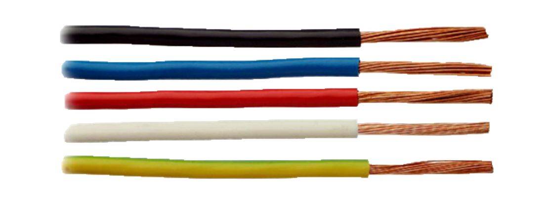 1) Жила – из медной отожженной проволоки первого или второго (от 16мм2) класса по ГОСТ 22483-77.2) Изоляция – из ПВХ пластиката различной расцветки (желто-зеленый, белый, черный, коричневый, синий, серый, голубой, красный).