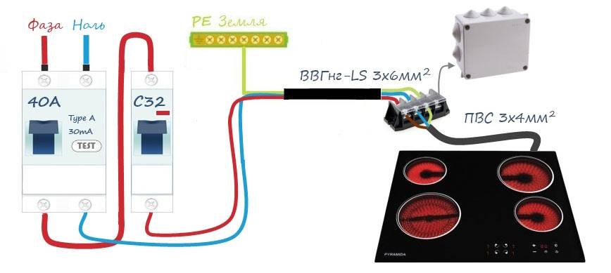 Для подключения электроплиты обязательно используют выделенную линию с защитным автоматом от квартирного щитка или домового. Номинал автомата подбирается также в зависимости от потребляемого тока плитой с округлением в большую сторону, чаще всего в пределах 40-50А.