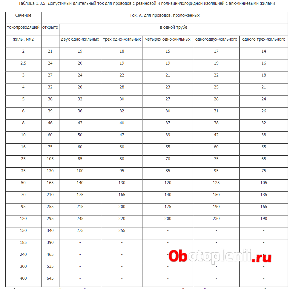 Будут постоянные проблемы с подключением его к розеткам, выключателем. Опять же если говорить о проводимой мощности, то медный провод с тем же сечением для алюминия 2,5 мм.кв. допускает длительный ток в 19А, а для меди в 25А. Здесь разница больше чем 1 КВт.