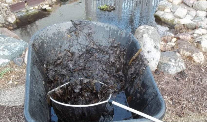 - Из деревьев или кустов листья, ветки или лепестки могут попасть в пруд. Их нужно убирать как можно чаще. Осенью лучше и вовсе накрыть конструкцию сеткой.