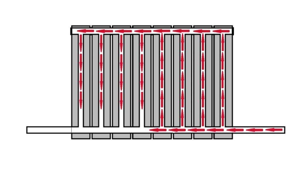 5. При одностороннем монтаже производитель рекомендует выбрать количество колонок максимум 24 штуки в системе отопления искусственного типа циркуляции и 12 – в гравитационном устройстве. Если требуется купить большее число секций Термал, применяют диагональный способ подключения.