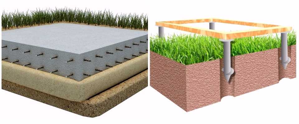 Плитный и свайный фундамент.