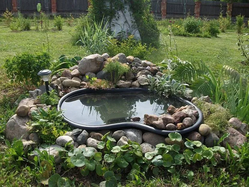 Небольшой водоем в альпинарии с подсветкойИсточник landas.ru
