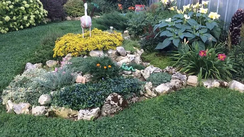 Часто в качестве фона в альпийскую горку добавляют низкорослые многолетники. Среди них есть представители с действительно красивым цветением.