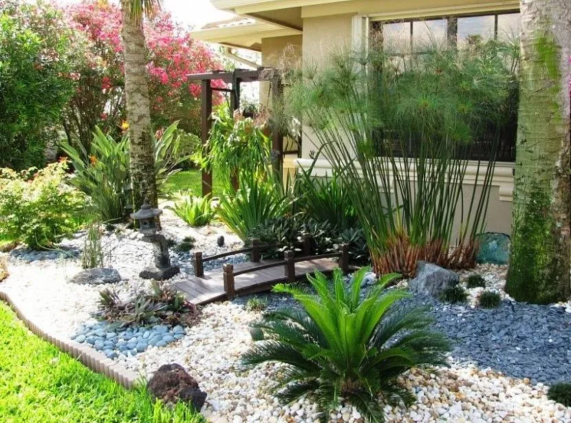 Растения и цветы тоже важно предварительно выбирать. Можно попробовать высадить садовые семена, которые уже есть в палисаднике, а можно приобрести специально для ландшафта