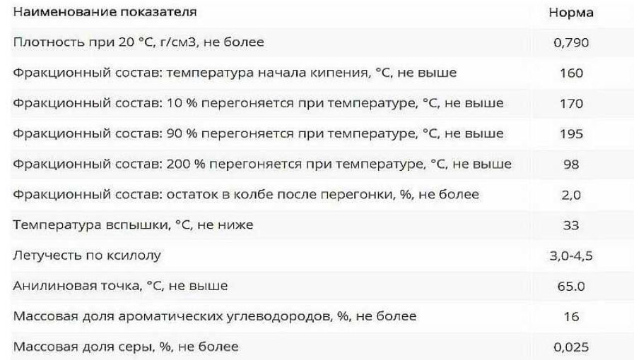 Как было написано ранее, white spirit — это прозрачно-вязкое вещество, которое напоминает моторное масло со специфическим запахом. Современные европейские технологии позволяют избежать несовершенства растворителей. Хотим привести Вам усредненную таблицу показателей для качественного white-spirit? По которым Вы сможете в будущем с легкостью определить является ли растворитель качественным: