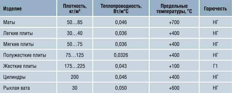 - максимально допустимая температура эксплуатации — +1000oС (базальтовая вата);