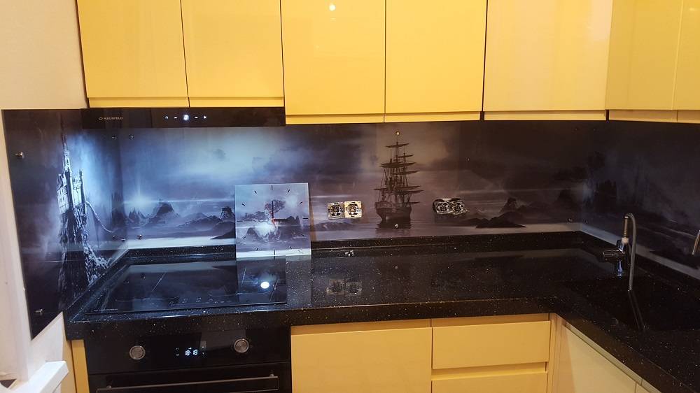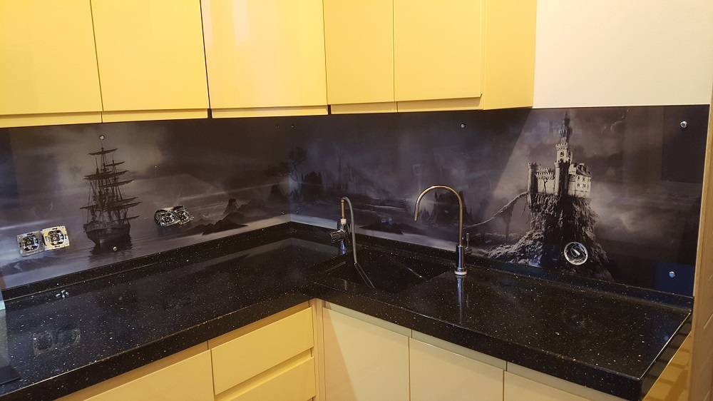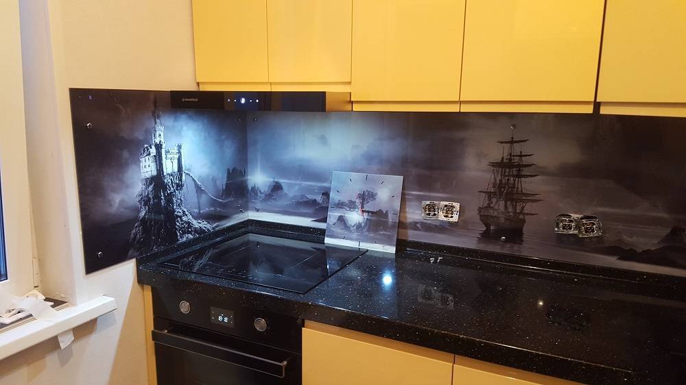 Наша компания готова создать на заказ стеклянный кухонный фартук, взяв на себя задачи по замеру, доставки, монтажу скинали и розеток. Вам останется только любоваться восхитительным интерьером вашей кухни после завершения всех работ.