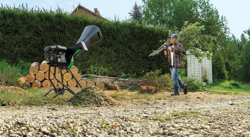 Бензиновые модели не имеют альтернативы для профессионального и полупрофессионального использования. Мощность таких устройств – более 3,5 кВт, они способны справляться с действительно сложными задачами и большими объемами: их производительность – до 4 куб. м в час, диаметр измельчаемых ветвей – до 75 мм. Недостатки у таких измельчителей те же, что и у любой бензиновой техники: высокий уровень шума и вибрации, выхлоп, неприятный запах при хранении в помещении, регулярное обслуживание двигателя после определенного количества часов работы, замена расходников (свечи и фильтры), необходимость специальной подготовки к долгому хранению и пр.