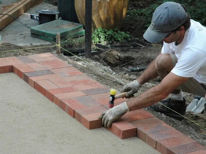Также предусматривает перекопку и трамбовку дна котлована. При этой технологии предпочтительнее использовать бордюрные камни. Они обеспечат хороший дренаж краев дорожки. Если в качестве бордюра используются кирпичи, то их целесообразно скрепить между собой цементным раствором, иначе каменистая масса может нарушить ровность укладки кирпичей.