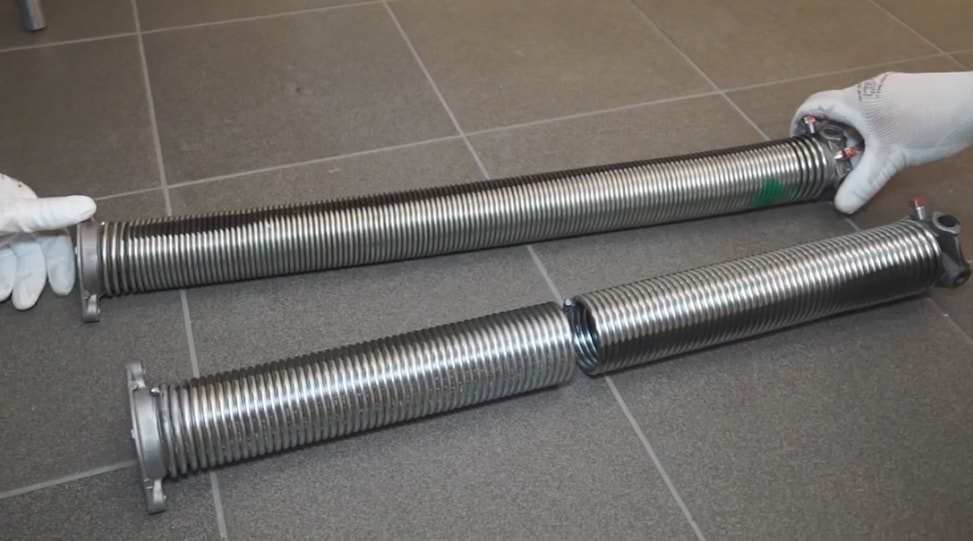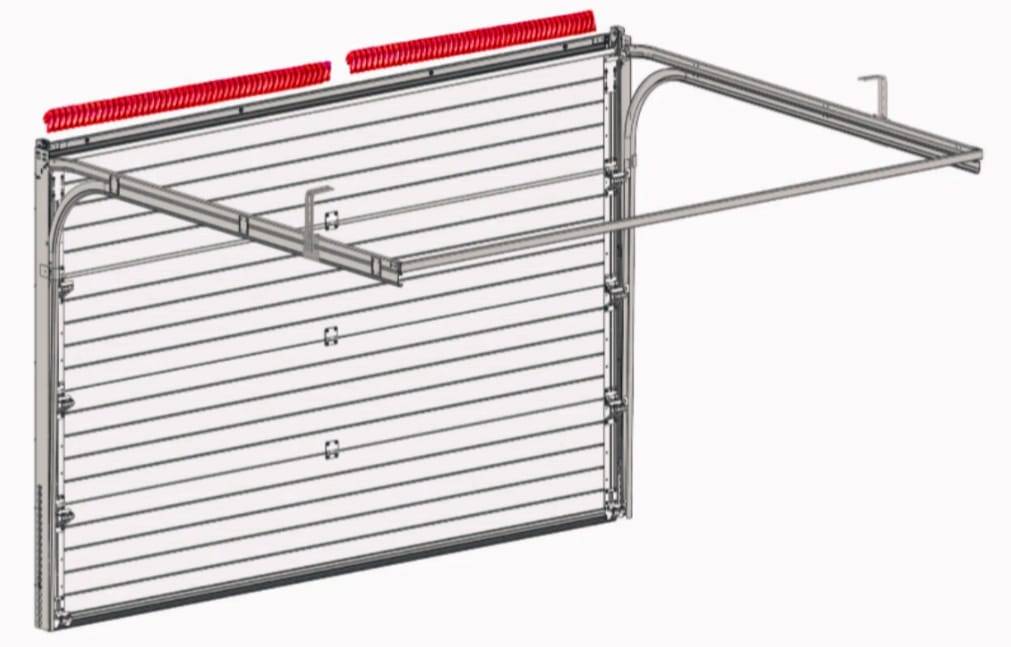 Расположения таких пружин отличается от предыдущих. Растяжные пружины устанавливаются в рельсы. В момент поднятия ворот пружины растягиваются, во время закрывания ворот пружины полностью освобождаются от энергии воздействия.