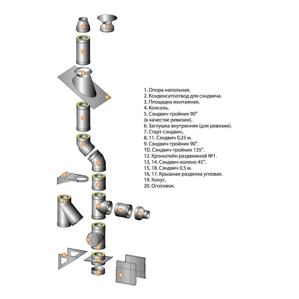 Из каких частей состоит уличный дымоход?