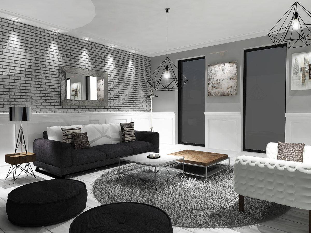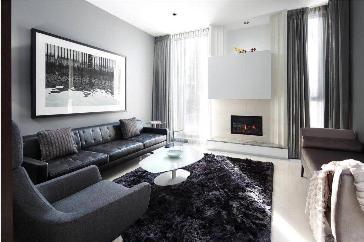 Актуальным дизайнерским решением считается использование сочетания только трёх цветов – белого, серого и чёрного. Несмотря на всю строгость, оформление выглядит великолепно, не включает в себя никаких лишних элементов. Добавить ярких акцентов можно при помощи цветных штор или элементов декора.