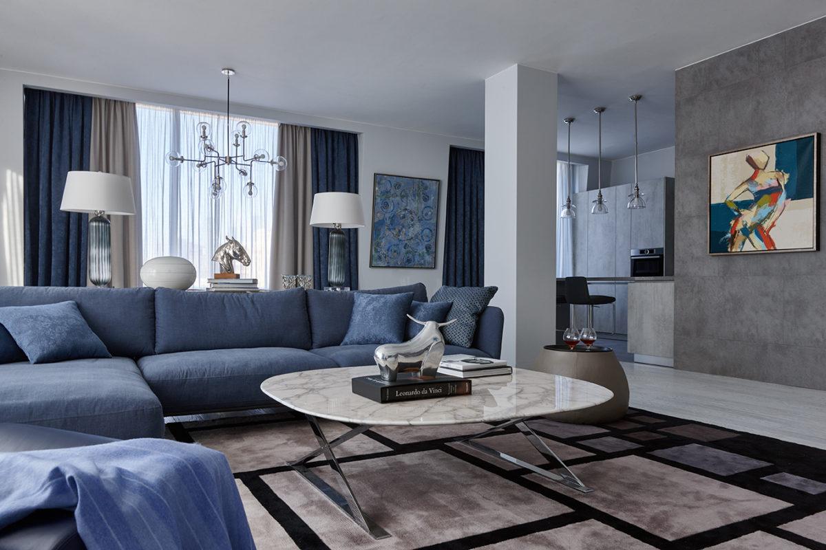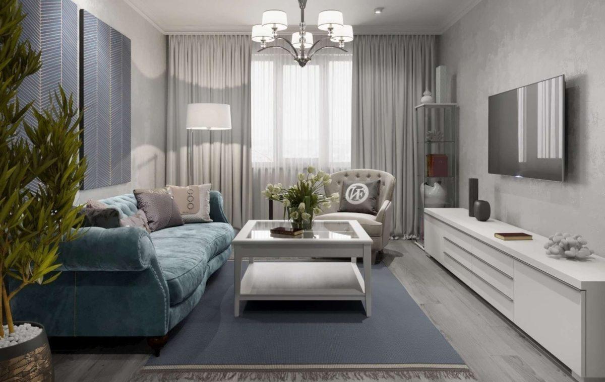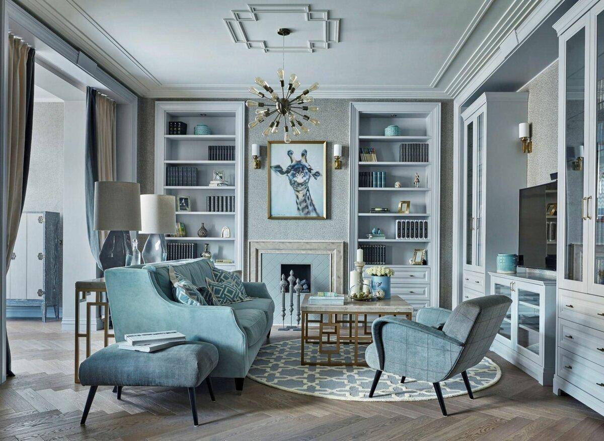 Серый и синий – поистине мужественное сочетание, все чаще такую комбинацию можно встретить в бизнес-центрах и при оформлении рабочей зоны в кабинете. Допустимы эксперименты до насыщенно бирюзового. Сочетание нежных пастельных тонов голубого и дымчатого хорошо гармонируют при оформлении спальни и детской.