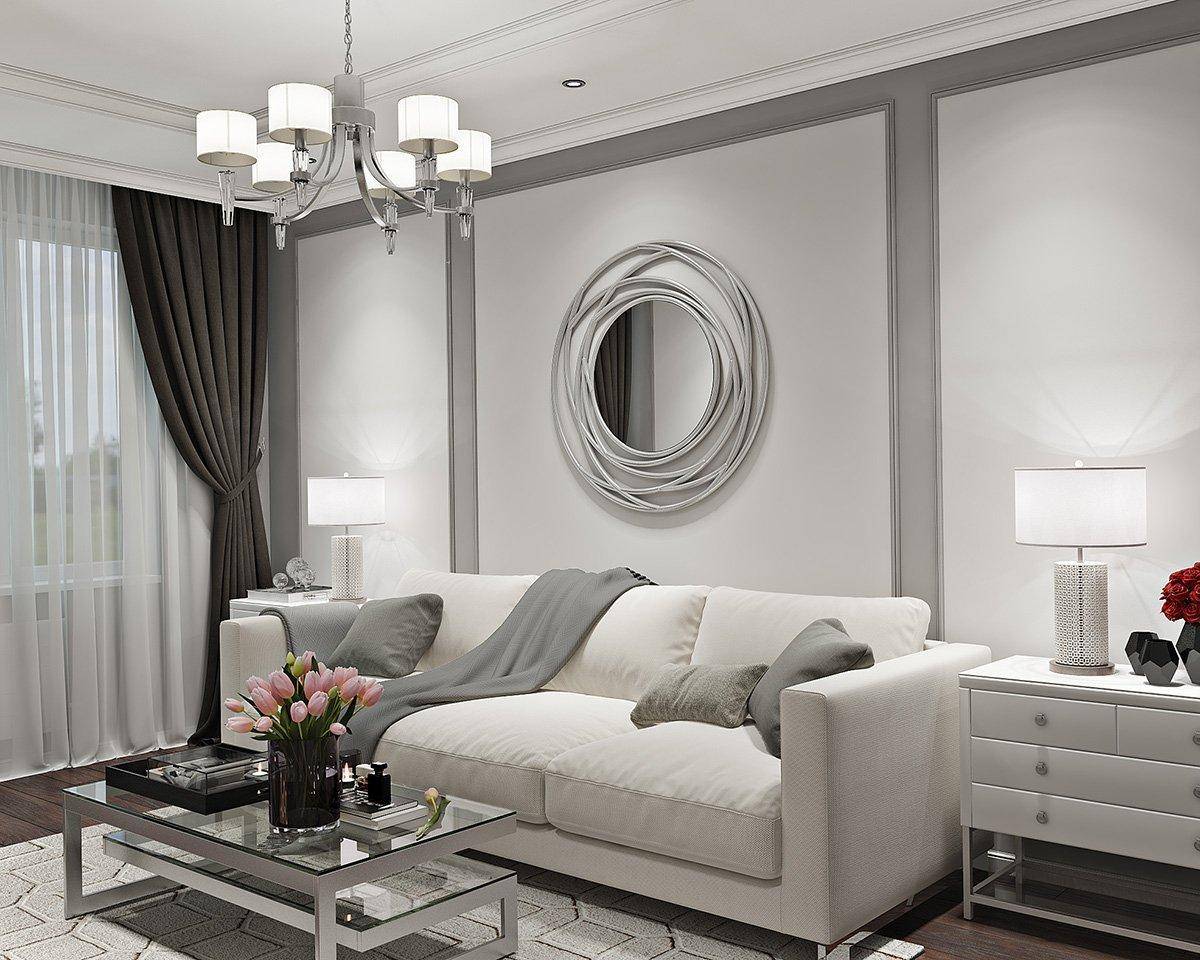 Серый и белый – классика жанра. Даже сами по себе серые обои чаще всего бывают с рисунками именно белой палитры. Светлый монохромный тон придает белому еще большую утонченность. В таком интерьере пара ярких ваз или картин станут просто бомбой.