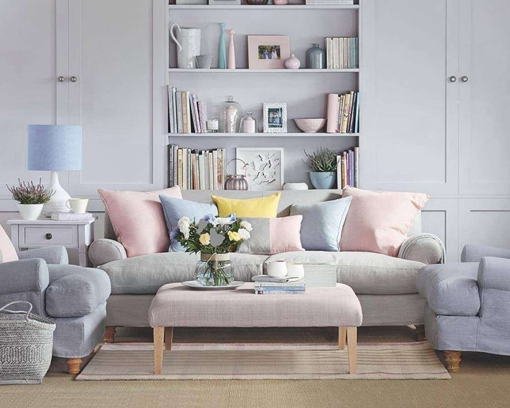 Для создания романтической обстановки хорошо соединить светло-серый тон с розовым, бледно-голубым, салатовым. Такой интерьер освежает комнату, делает ее легкой и элегантной.