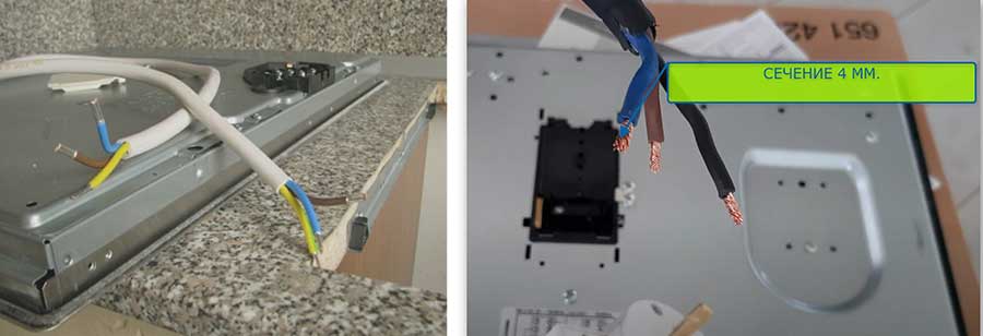 - Для варочной панели сечения кабеля должно быть 3×4 мм² или 3×6 мм². Что означает три жилы сечением каждой жилы 4 (6) мм².