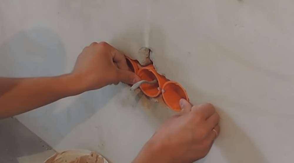 Если выбран встроенный вариант, сначала монтируется подрозетник и в него выводится кабель.