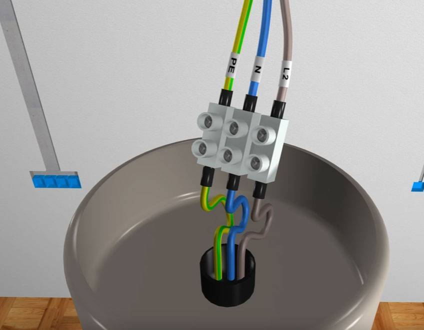 Далее надо подключить провода к клеммам. Если терминалы зажимные, то жилы в них просто вставляются. Если винтовые – их надо надежно затянуть отверткой.