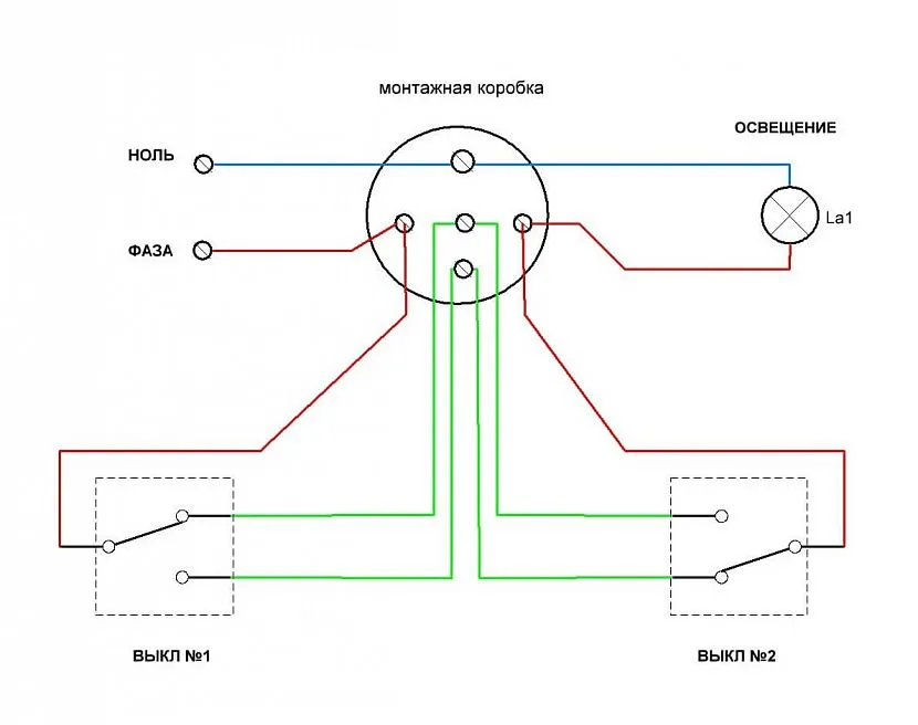 Схема подключения проходного выключателя с двух мест