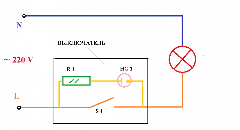 Зависит от выбранного источника освещения: для подключения светодиодной лампы или неонового светильника требуется выбрать схему подсоединения, которая характеризуется повышенным сопротивлением. Такую специфику линии создает ограничительный резистор.