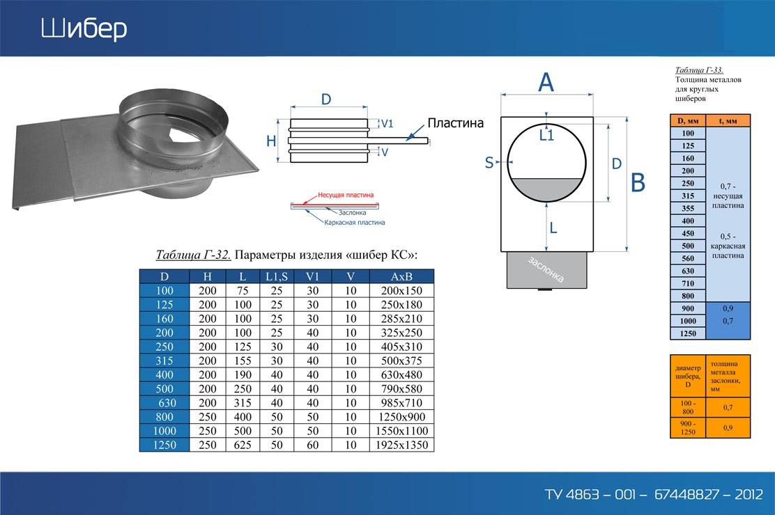 Форма шиберов обуславливается формой вентиляционной шахты – чаще всего применяются круглые задвижки, однако в отдельных случаях необходимы клапаны именно прямоугольной формы:
