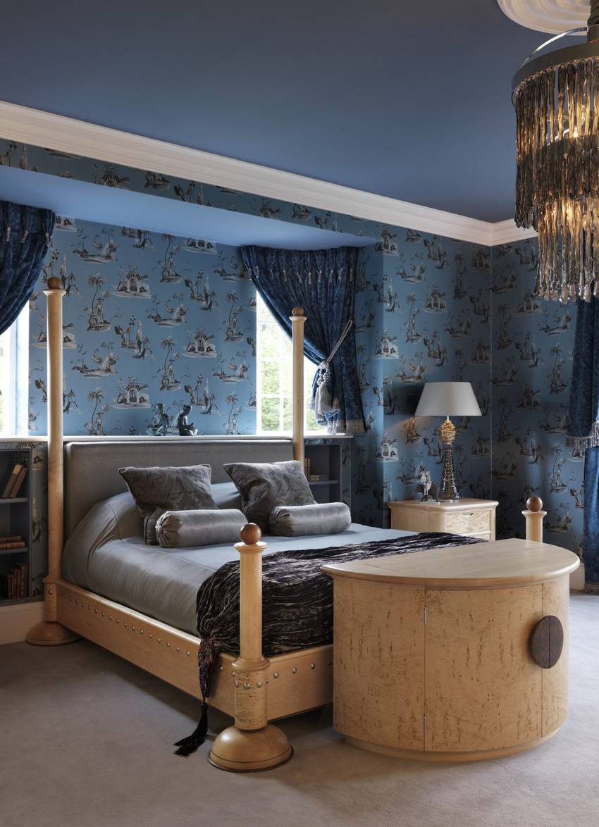 Применение синих обоев возможно в совершенно разных стилях: