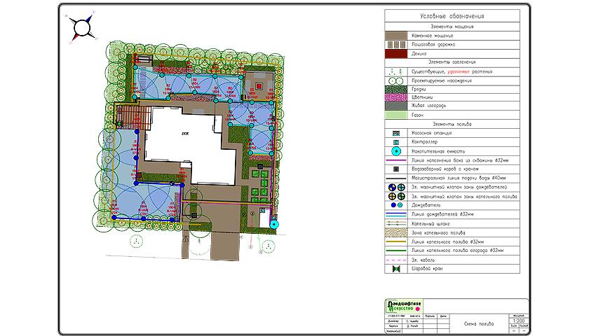 На чертеж также наносят схему необходимых коммуникаций: подвод воды и электричества